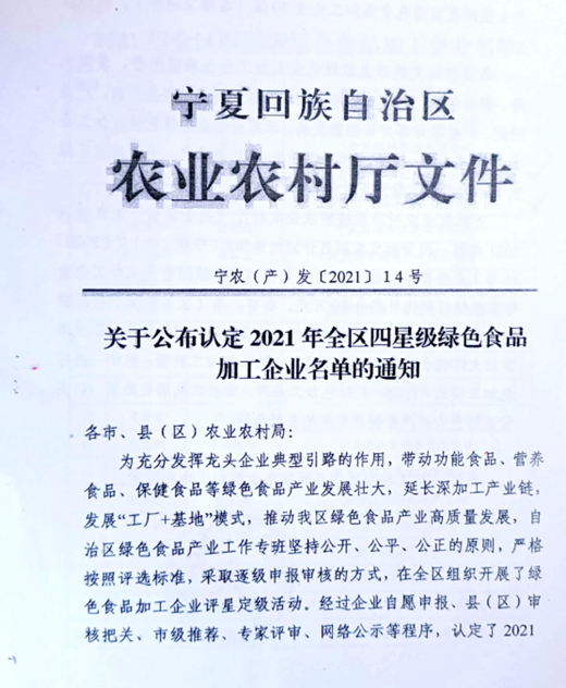 全區四星級綠色食品加工企業
